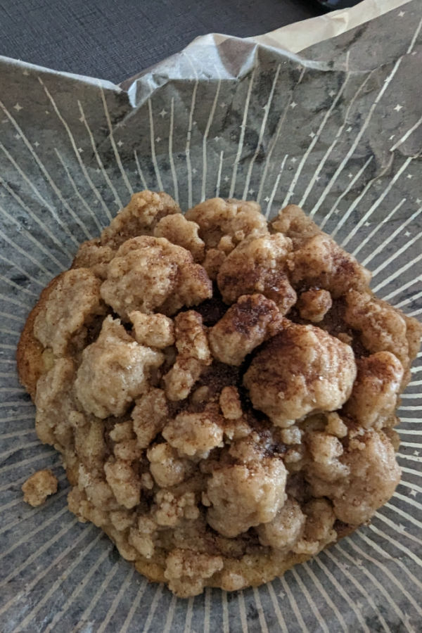 My first cookie was the Coffee Cake Cookie. The Coffee Cake cookie is an Exclusive Daily Limited Edition Disney Springs Flavor. It is a vanilla bean and cinnamon cookie topped with butter cookie crumbs. It is available every morning until it sells out and is a popular choice.