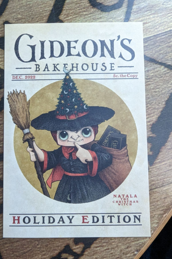 We were given the daily menu so that we could decide which cookies we wanted while we waited. At the front of the line, the person there was super nice to us and even helped us decide which cake slice we were getting. Then it was our turn to go in. I watched many videos on Gideon’s Bakehouse and thought I knew what to expect. It was so much more fabulous than I thought! The old books, the dark and gloomy atmosphere, and the smell were a treat for the senses.